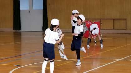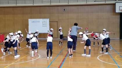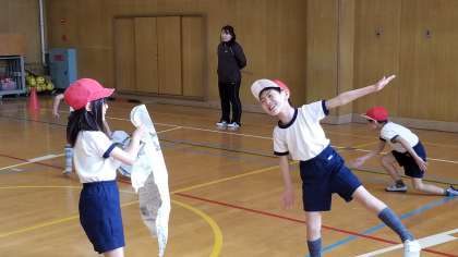人間の形をした新聞紙を動かし、その通りに体をうがかす運動など、とても楽しく、運動量も豊富な授業でした。