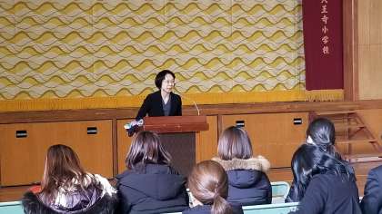本日午後3時より体育館で入学説明会を実施しました。地域から主任児童員の巽様、学校からは一年生、保健室、給食、事務の先生から説明がありました。たくさんの出席ありがとうございました。