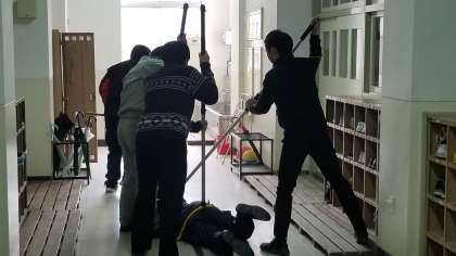本日3時間目に防犯訓練を行いました。天王寺警察の方に協力してもらい、不審者が刃物を持って学校に入ってきたという設定で訓練を行いました。教室へ行くことを防ぐ教職員や放送の合図で各教室の扉や窓のかぎをして、カーテンを閉めて隅に待機する等、「もしも」を想定して訓練を行いました。