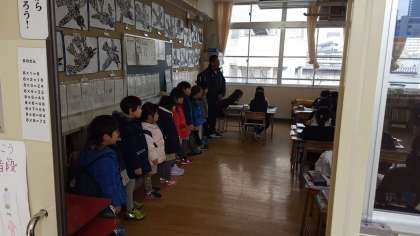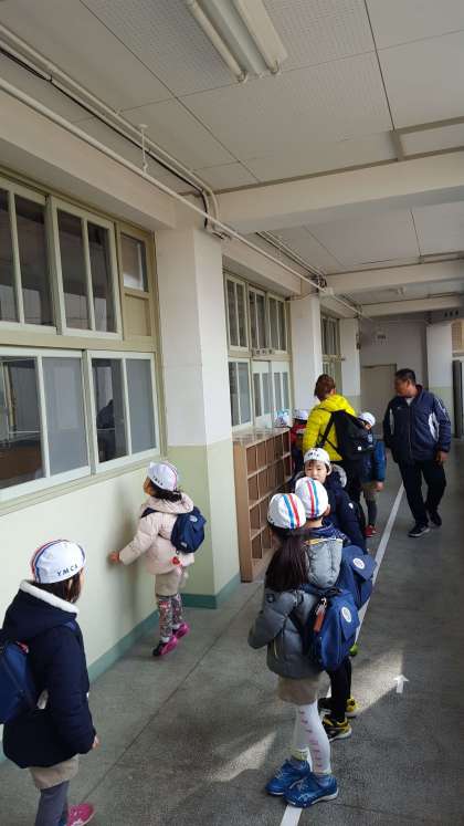 大阪YMCA英語幼児園の皆さんが、学校見学で天小に来られました。各教室を見て、講堂や運動場で体を動かしていました。