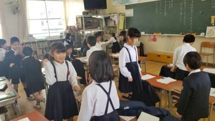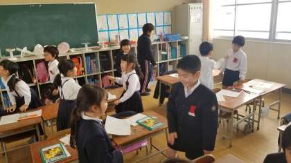 1年1組の授業の様子です。国語科で「じゃんけんやさんをひらこう」の学習です。