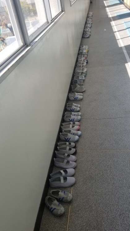 多目的室に入る時も、きれいに靴を並べて入室できています。できていない所はきれいにならべ直してくれる児童もいました。1年生、着実に成長しています。
