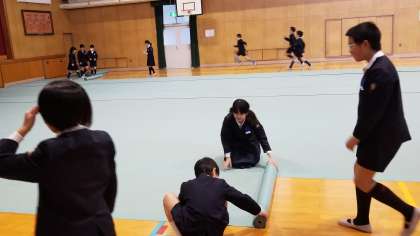 5年生が卒業式練習のため、体育館にシートを敷いてくれました。