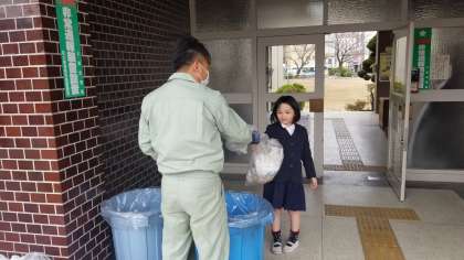 昼休みの清掃活動の様子です。全学年の児童がしっかりと自分の役割を果たしています。