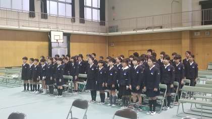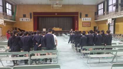 5年生が朝の時間を活用して、卒業式の練習をしています。起立・着席などしっかりと練習できていました。