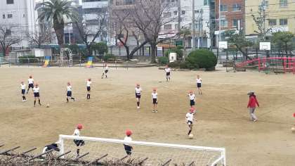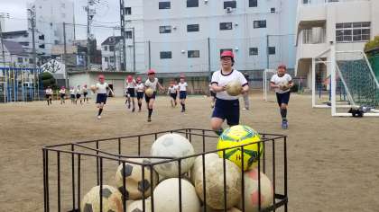 5年1組の体育の様子です。休み時間に運動場が使えないので、体育の時間は元気いっぱいです。