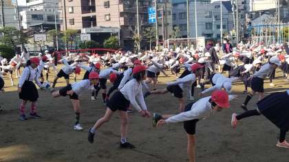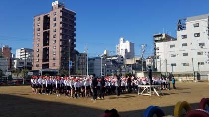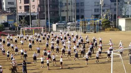 その後、ラジオ体操を行いました。みんな音楽に合わせて体を動かしていました。
