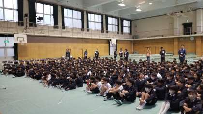 最後に週目標についてお話がありました。今週の目標は「廊下・階段は走らずに歩こう!」です。