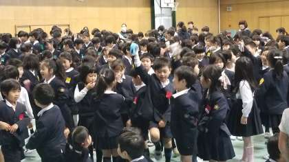 保健委員会より、「生活リズムを整えよう」というお話の後、健康調査が行われました。○早起きはできましたか。○歯みがきはしましたか。○きれいなハンカチをもってきましたか。子どもたちは「ハンカチもってきた」とポケットから出してみせていました。
