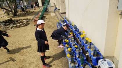 育てた花の確認をしています。