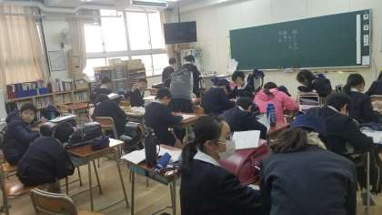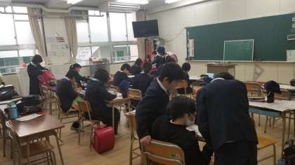 6年生の放課後の様子です。たくさんの児童が教室で学習しています。授業のようです。学校生活もあと少しです。未提出の課題をしているのでしょうか。
