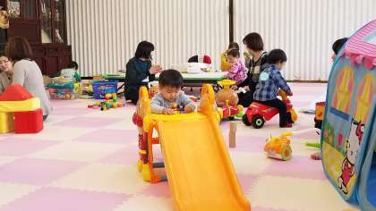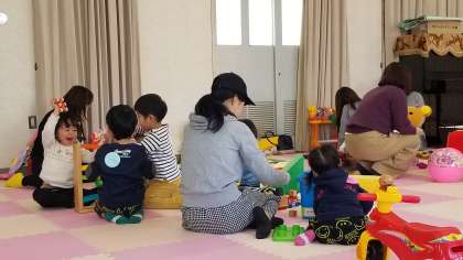天気も良く、たくさん参加されています。今年度最後のひまわりです。来年度からは幼稚園に行くお友だちもいるようです。幼稚園でもいっぱい遊んでほしいと思います。