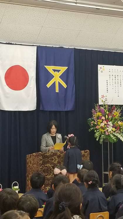 修了証書を園長先生から受けとった後、しっかりとお父さん、お母さん、学園の先生に感謝の気持ちを伝えていました。素晴らしい修了式でした。