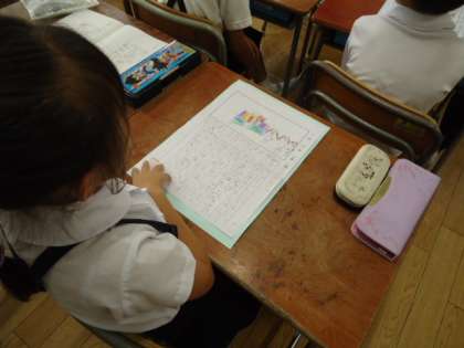 夏休みの宿題で書いた絵日記を紹介しあいました。