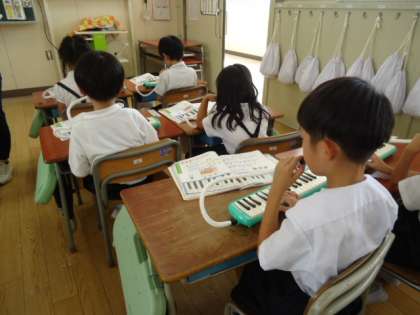 音楽の時間に、鍵盤ハーモニカを使って、演奏しました。
