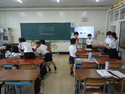 6年生の班長を中心に、低学年の子の意見も取り入れながら、上手に話し合っていました。