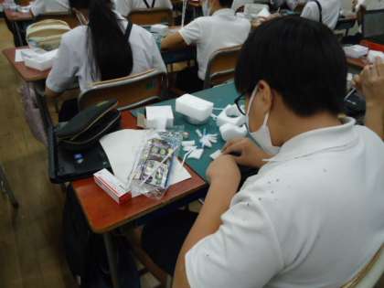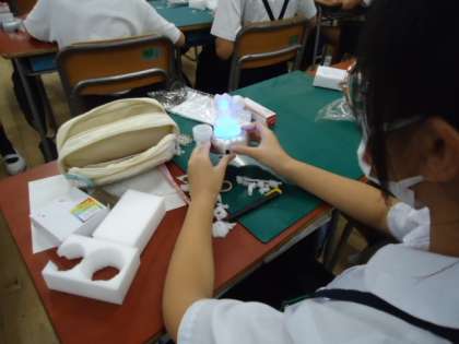 メラミンスポンジやストローを使って作品を作るのですが、下からライトを照らすことで透過した色が浮かび上がります。