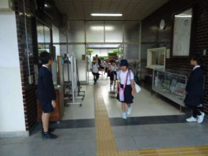 後期の児童会役員が、元気よくあいさつしてくれています。