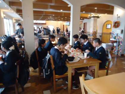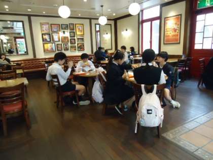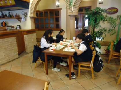 今日の昼食は、ミールクーポンを使って、グループごとに自由にお店を選んで食事をしています。