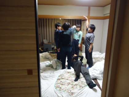 協力して準備していますが、まだまだ寝たくなさそうな雰囲気十分です。