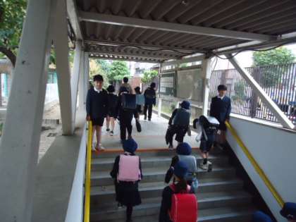 今日もたくさんの子どもたちが元気にあいさつを交わしました。