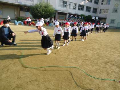 1年生はなわとび遊びです。