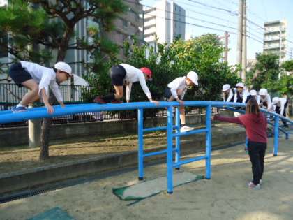 3年生は、固定遊具のサーキットに挑戦です。