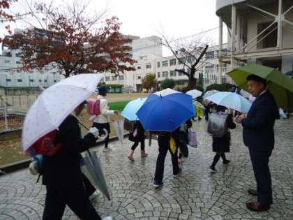 三連休明けの登校日は、雨のスタートになりました。