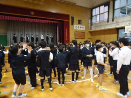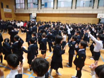 今日の児童集会は、集会委員をリーダーに「会長さんの命令」ゲームをしました。