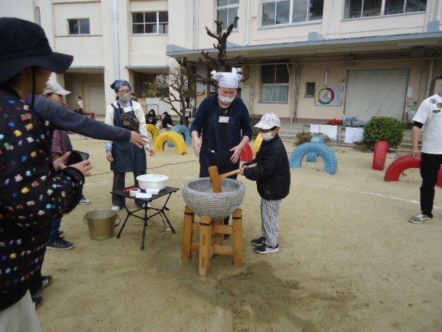7日(日)天王寺地域活動協議会と本校PTAによるもちつき大会がありました。