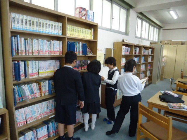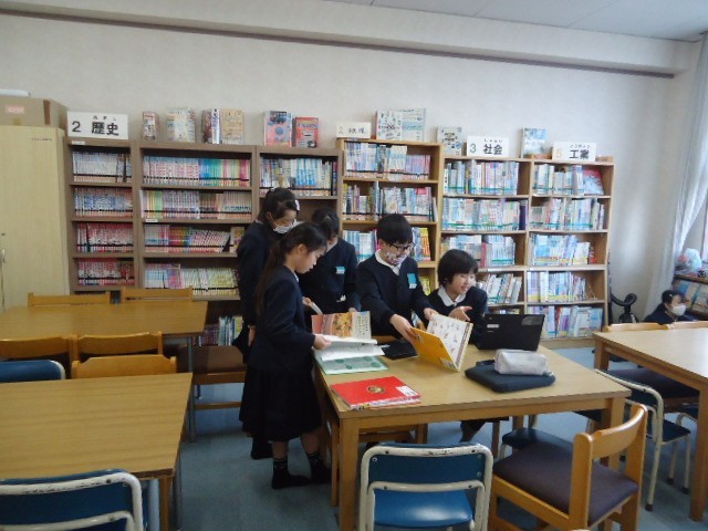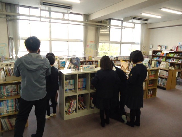 国語科の学習でブックトークをするために、図書室で本を探しました。