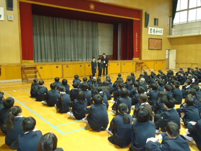 大阪市歌と校歌の斉唱に続き、「あけましておめでとうございます」のあいさつで校長講話をしました。