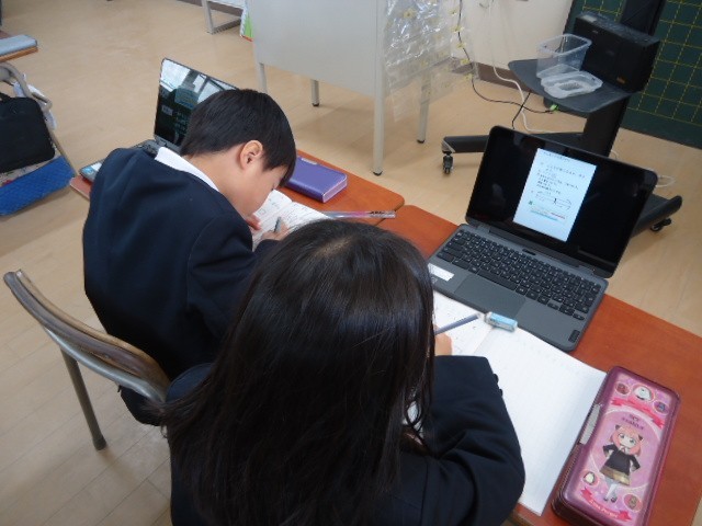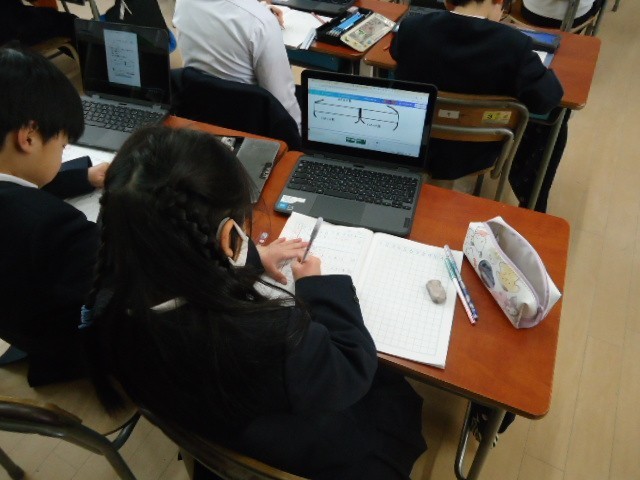 みんなは、デジタル教材も使いながら、しっかりと問題から必要な情報を取り出して立式していました。
