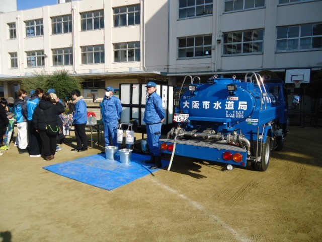天王寺地域活動協議会主催の防災イベントが学校であり、学校の子どもたちも参加しました。