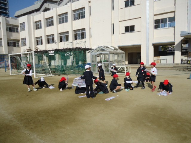 生活科の時間に、凧あげをしました。