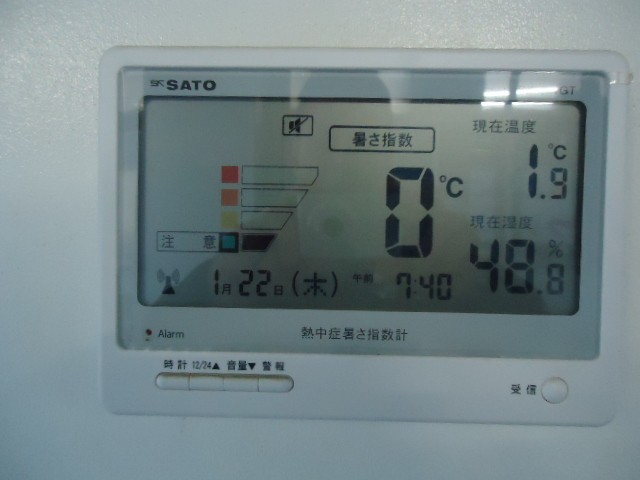 今朝の職員室前の温度計は、体感0度になりました。