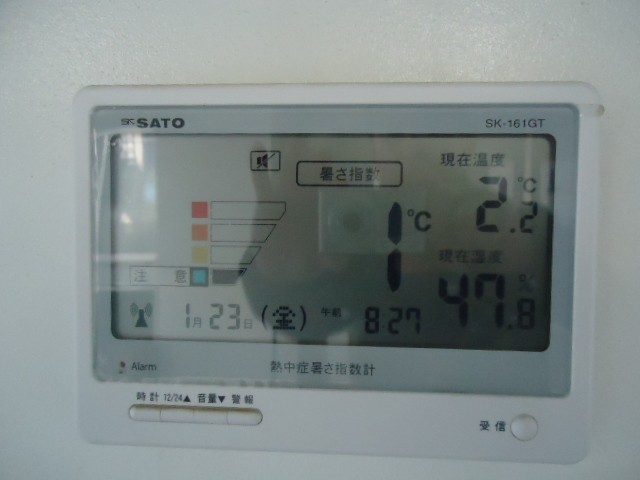 職員室前の温度計は、登校開始前に体感気温0度だったのが、みんなが通った後に見ると少しだけ上がっていました。