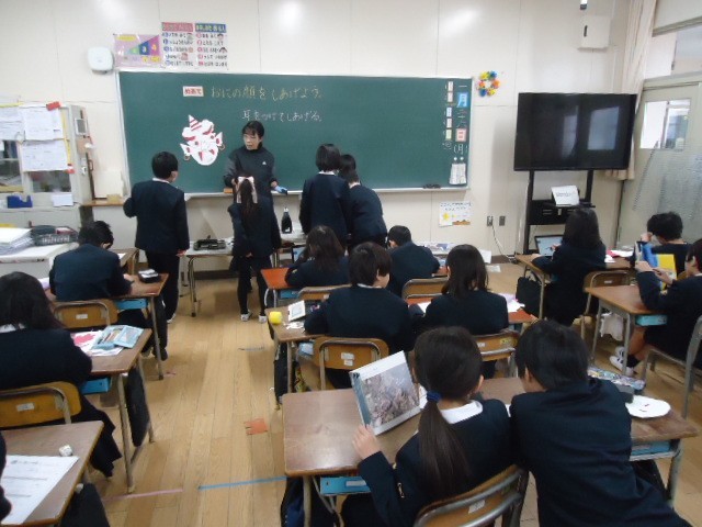 作った鬼の顔が、どんな風に表されるのか楽しみな様子です。