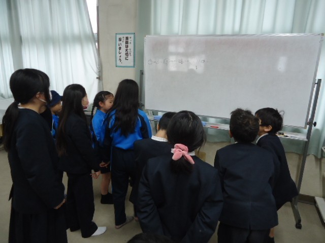 今日は、たて割り班で遊ぶ「ふれあい遊び」をしました。