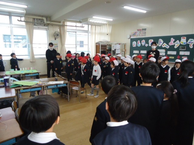 2年生が生活科の学習で作ったおもちゃを1年生に紹介し、楽しんでもらう学習です。