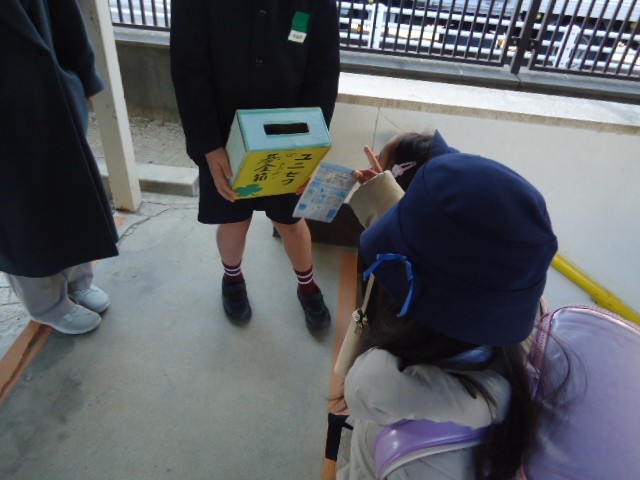 今週は、登校時間に合わせて児童会の人がユニセフ募金をしています。