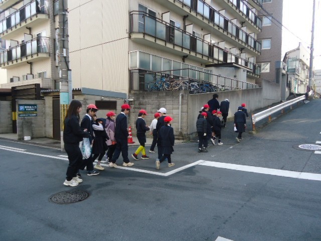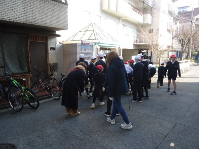 たて割りの登校班でグループになって、集合場所や登下校のルートで清掃活動をしました。