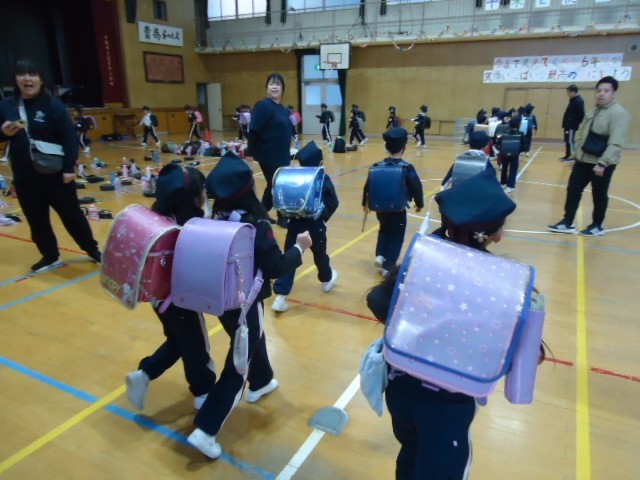 教室での学習体験や、講堂でのランドセル体験や体育学習体験をしました。