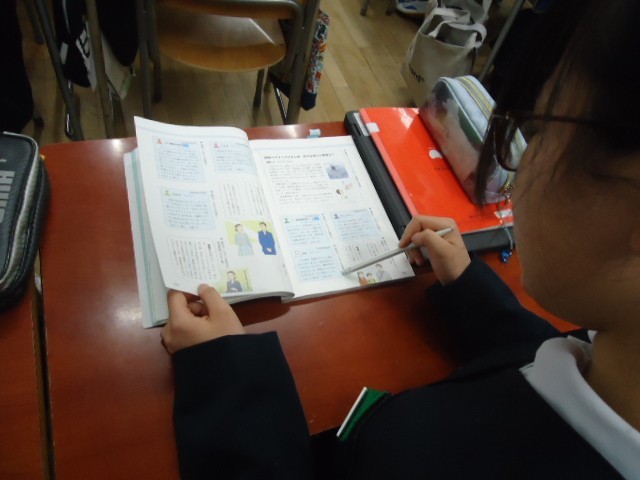 今日は、教科書の例題を使って、誰がどんな情報から意見を述べているのかを考えました。