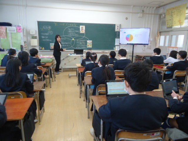 ロイロノートの思考ツールやアンケート機能などのICTを活用して、自分の考えと友だちの考えをしっかり交流させながら話し合っていました。