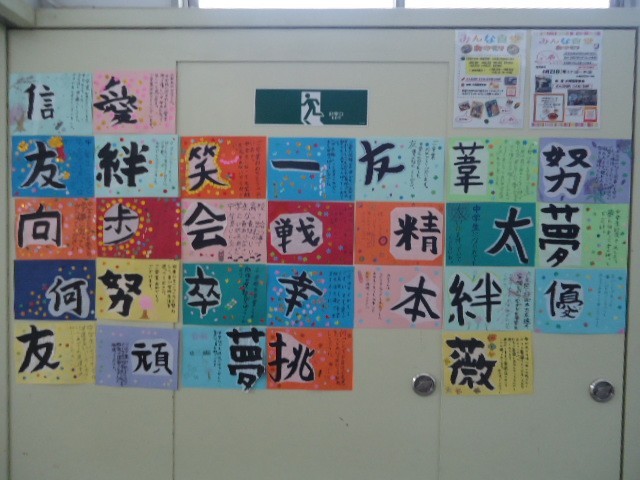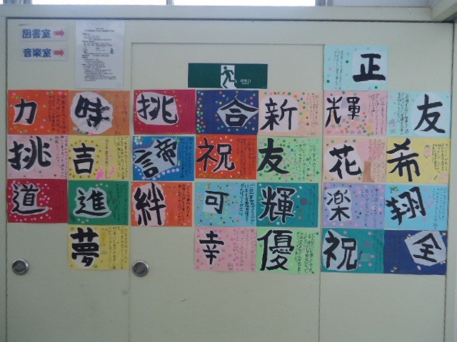 卒業していく6年生に向けて、一文字漢字の贈り物を作りました。