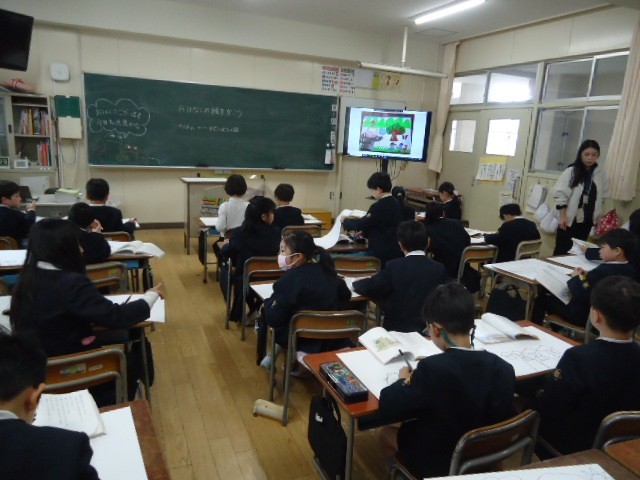教科書にある挿絵を模写するのですが、そっくりに描く子もいれば自分なりにちょっとアレンジする子もいます。