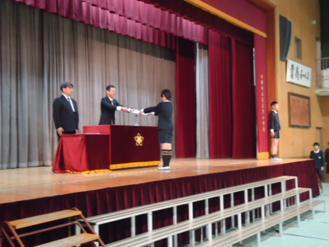 今日は、保護者席に5年生が座り、在校生代表として参加しました。