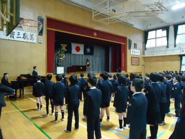 講堂は、6年生がいなくなった分、ちょっぴりさみしくなった感じがします。