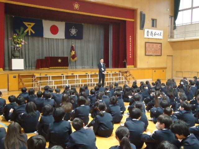 その後の校長講話では、今年一年を振り返って楽しく学校生活が過ごせたかどうかを振りかえってほしい、と話しました。